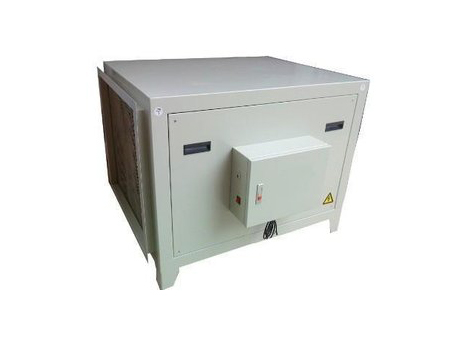 油烟由风机吸入静电式油烟净化器,其中部分较大的油雾滴、油污颗粒在均流板上由于机械碰撞、阻留而被捕集。当气流进入高压静电场时,在高压电场的作用下,油烟气体电离,油雾荷电,大部分得以降解炭化;少部分微小油粒在吸附电场的电场力及气流作用下向电场的正负极板运动被收集在极板上并在自身重力的作用下流到集油盘,经排油通道排出,余下的微米级油雾被电场降解成二氧化碳和水,最终排出洁净空气;同时在高压发生器的作用下,电场内空气产生臭氧,除去了烟气中大部分的气味。